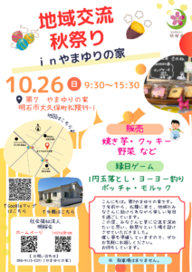 10月26日(日)に第7やまゆりの家で「地域交流秋祭りinやまゆりの家」を行います。