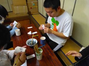 次に向かった絵付け体験では、皆さん真剣に絵を描かれていました。