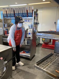 お店に着いたらエプロンと帽子を付け、手を洗って準備万端