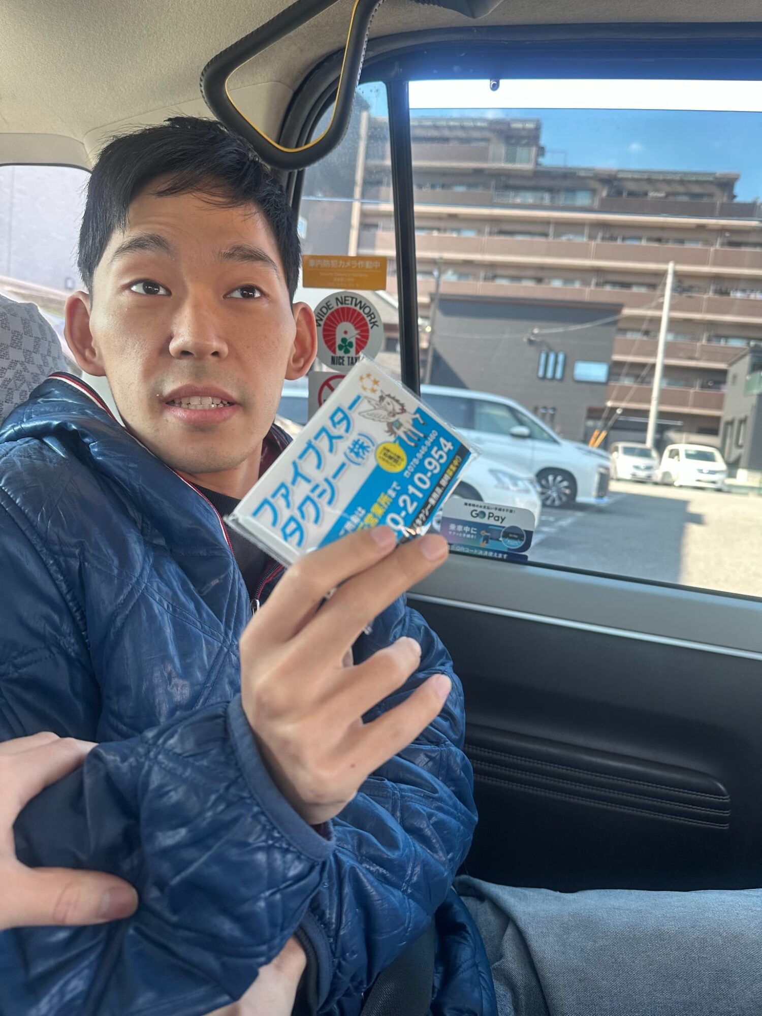 いざ帰りのタクシーへ!運転手さんに許可を頂き、記念にパシャリ📷