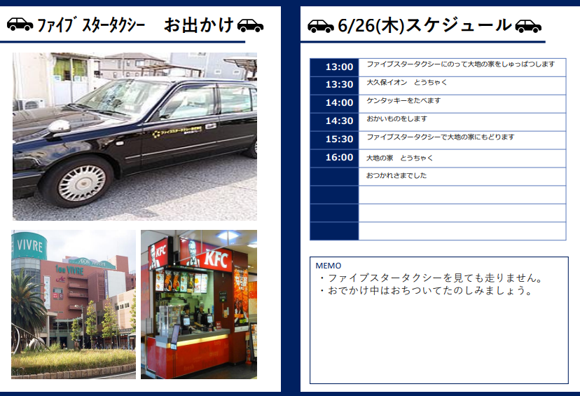 そのため、お出かけするにあたって、予告支援を取り入れています。